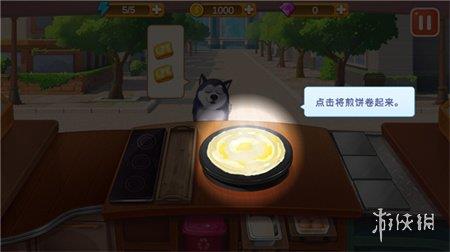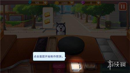 6、为狗子顾客制作煎饼吧,点击面团开始制作。
