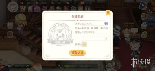 6、在创建家族的步骤中,你需要输入家族名称,选择一个派系,并填写家族宗旨。完成这些步骤后,点击领取认证按钮,你的家族就正式创建成功了。