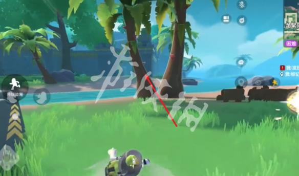 1、点位一:来到图中的位置,从箭头处的位置上树,上来过后可以找一个位置即可。