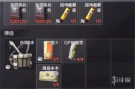 这里为新手提供一份药品清单:至少准备 1 份手术包、1 份绷带、1 份止痛药、2 个急救包,以及一瓶橙汁(当作水)。