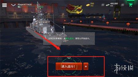 3、接下来,返回主菜单,点击进入战斗,使用刚才购买的新战舰。
