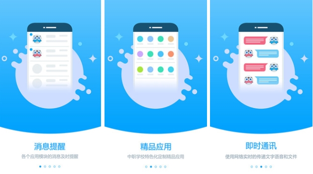 这款软件能帮助职业院校更好的进行管理。通过移动端可以自由的进行办公,还能查看学校内所有的通讯录。在办公中可以用来接收公文和对教职工进行考勤,安排课表、宿舍检查记录登记等内容。