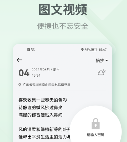 非常精致,用简单的日记本可记录小情绪以及生活中的各种事项,具有独特的加密功能,这样在记录时更加安全,更加高效。