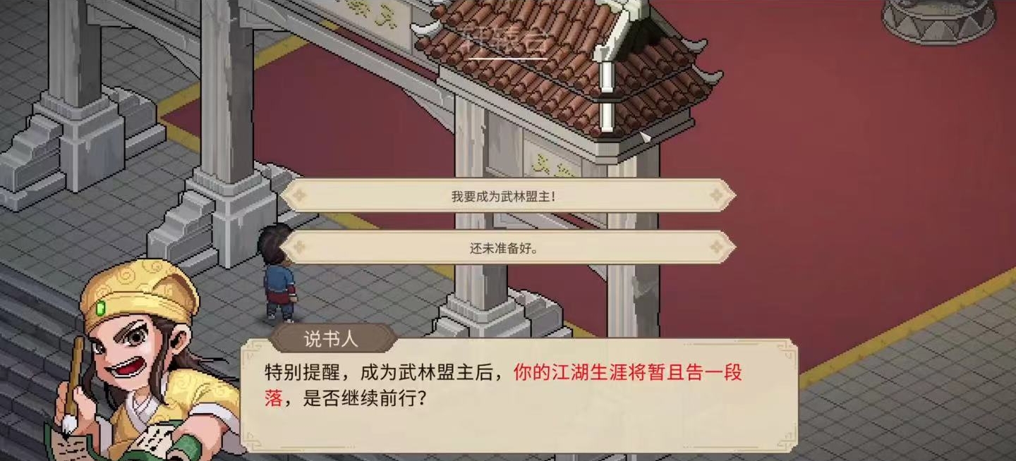 此外,若玩家在进入轩辕台地图后确定接受挑战,那么在完成所有挑战后玩家将会直接达成武林盟主的结局,自己在游戏中的江湖历程也会告一段落,而且辕台地图出现后就不会消失了,所以那些还不想那么快达成结局的玩家可稍候再来轩辕台。