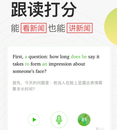 这是专业的英语听力训练软件以及跟读软件,每日精选素材,有海量精选内容值得推荐,每天坚持10分钟,感受沉浸式跟读练习,久而久之让英语水平提升。