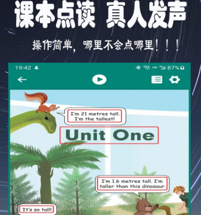 其中各种教材与中小学课本同步,有跟读功能,所有课文都可免费下载,操作便捷简单易用,真人发音,读音更加标准。