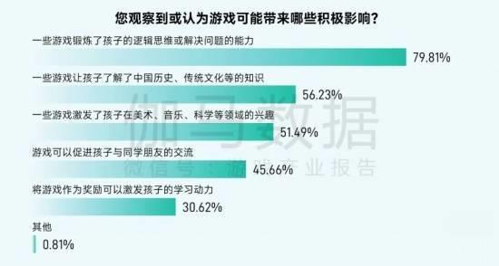 约6成家长认为游戏能产生一定积极影响 能力、认知、兴趣等方面超半数认可
