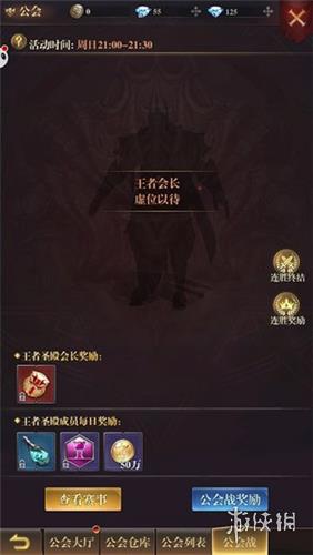 公会周常奖励包括海量经验、公会贡献、BOSS贡品;公会红包福利满满,有机会抽取钻石;公会战是全服联赛,占领王者圣殿可获得经验药水、铭文精华、金币等奖励。