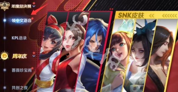 王者荣耀SNK英雄皮肤中文语音怎么领1、活动时间为10月30日版本更新后至11月12日晚上23:59。