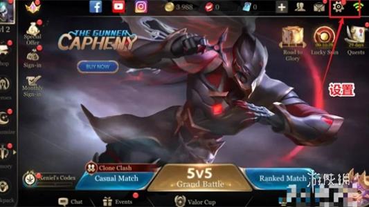 王者荣耀国际服怎么设置中文1、在王者荣耀国际服的主界面右上角找到并点击设置图标。