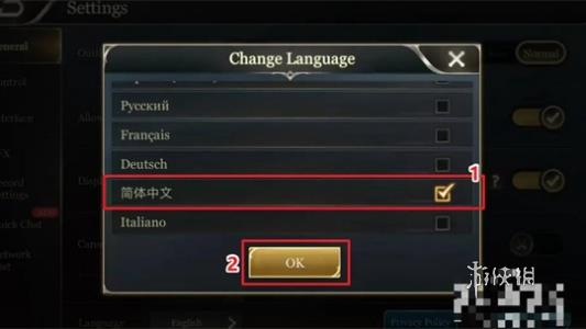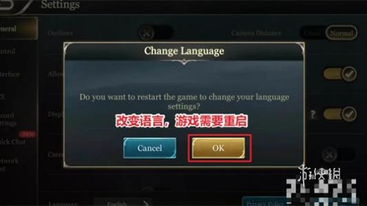 4、选择简体中文后,在弹出的提示框中选择OK重启游戏。