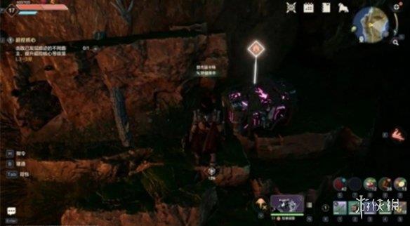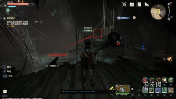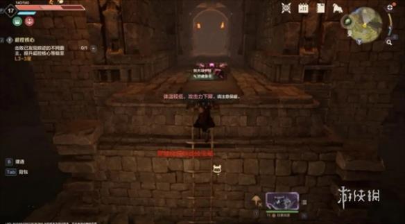 1、废弃矿坑秘境中有一个高台,玩家需要在高台有的位置搭建梯子。