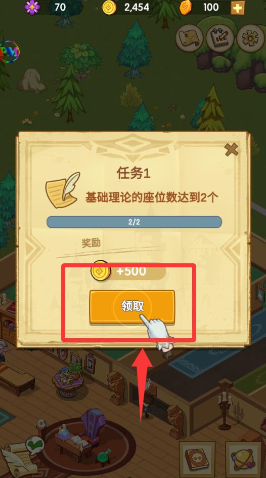 放置魔法学院游戏新手教程1、进入游戏点击任务里领取奖励。
