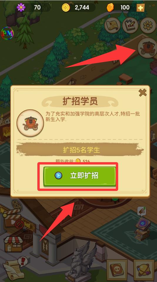 2、点击游戏界面里的扩招学员里的立即扩招。