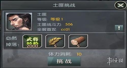 土匪挑战(打野):通过打野,玩家可以获得丰富的资源和武将经验。