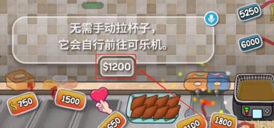 2、成功获得可乐机后,只需消耗1200金币升级杯子就能在客人点单后自动接可乐。