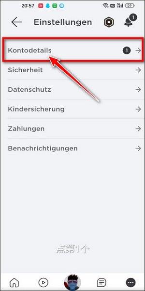 3、什么都不用看,直接往下拉,看到一个齿轮图标(Einstellungen)点击下,这个是设置选项;