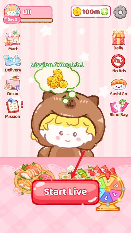 寿司乐园游戏玩法1、我们进入游戏后点击Start Live开启直播。