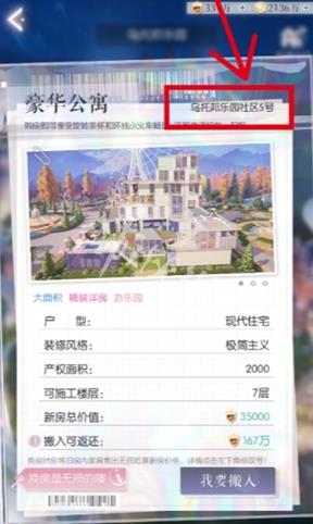 2、选择好社区以后,点击差不多地皮的房子搬入。