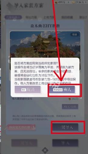 7、点击一键导入,该操作会将当前家园夷为平地,再替换为新方案,且无法回退,所以在点击确认前要考虑好。