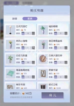 8、如果栗子不够或者家具没有可以选择在购买明细中选择减少家具。