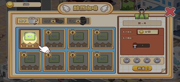 饮料小镇游戏中怎么制作咖啡1、完成新手教程之后,点击关卡进入。