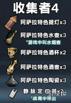 上交3个非绑定的阿萨拉特色提灯,3个非绑定的阿萨拉风情水壶(水烟壶),2个非绑定的阿萨拉特色酒杯,3个非绑定的阿萨拉特色酒壶,3个非绑定的阿萨拉特色陶瓷。