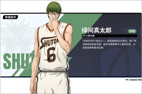 海常高中的首发球员。在个性派聚集的海常里虽没有出彩表现,但凭借稳健的防守能力守住了篮板。