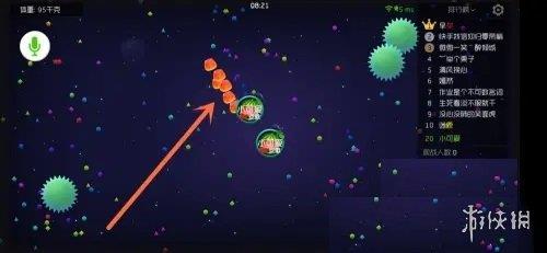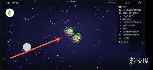 1、进入游戏后,迅速发育成大球状态,随后将其分裂成两个小球。