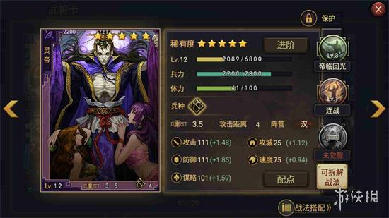 3、招募名将,搭配战法,组建自己的军队。利用地形、时间、权谋和战略,与真实的玩家随时对抗。
