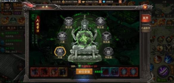 当冥界开放后,需要先打破冥界封锁结界才可以通过冥界之门进入冥界。打破材料为六道精华,可通过六道磐涅副本击杀BOSS掉落