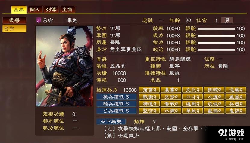 三国志13吕布开局全能力满存档,专为偷懒玩家制作,让你开局就能直接使用能力值全满的吕布,三国霸业始于一个好用的武将存档,喜欢玩三国志13的玩家朋友们快来试试这个存档吧!