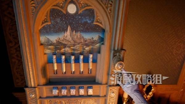 埃尔南德-布鲁蒙特大宅(风景金属柱)保险箱解法旋转旋钮打开保险箱,建议用键盘操作,将每个金属柱中间的分界线与画底部的线对齐,旋转盘调整的是上方金属柱的重量,向上转是更重,向下转是更轻,每次调整都需要按下最右侧的按钮才能检验当前的调整结果。