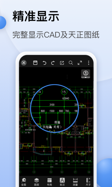 专业手机看图,全球领先技术!天正、AUTO各种常见图纸都能快速打开!强大兼容性,专业解析能力,不用担心陌生文件打开乱码!各大行业素材均能轻松打开!支持云盘保存,手机的、平板、电脑都可以轻松打开和处理!