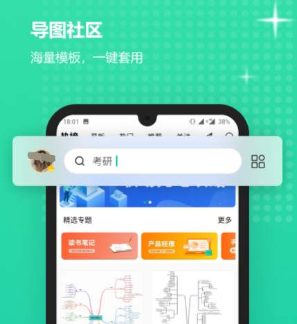 该软件在制作思维导图的时候,一共有10万多个模板可选择,不仅是专业的思维导图软件,它在应用的时候只需要一键就可套用。在做导图的时候,不仅速度快,还能多端云同步,解决每一个场景所需要的问题。比如可将自己的导图进行管理创建,甚至是展示分享,在生活、工作、学习、备考、读书笔记这方面就是比较适合的。