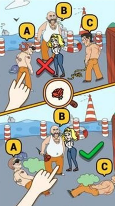 需要玩家解谜的场景并没有太多复杂的设计,只是有少数物品和几位人物组合而成的,简洁的画面更容易让玩家找到解题的思路和答案,在遇到思维瓶颈时可以采用提示的功能寻求帮助,玩家遇到的解谜主题很多,有的是帮助小姐姐找到丢失的物品,可以寻求案件的真相,找到图片上的不同点等。
