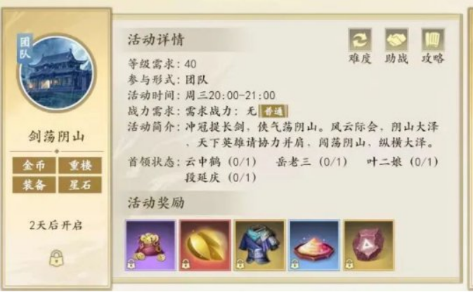 当游戏等级达到40级时,每周三的晚8点~9点可以跟自己的团队成员组成一支高达12人的团队。任务开启时需要前往大理npc与npc对话。可以选择四个不同难度的副本,分别是普通,困难,噩梦和地狱级别。对,玩家可以根据自身的级别和战斗能力选择难度。建议还是要稳扎稳打选择更难的副本。