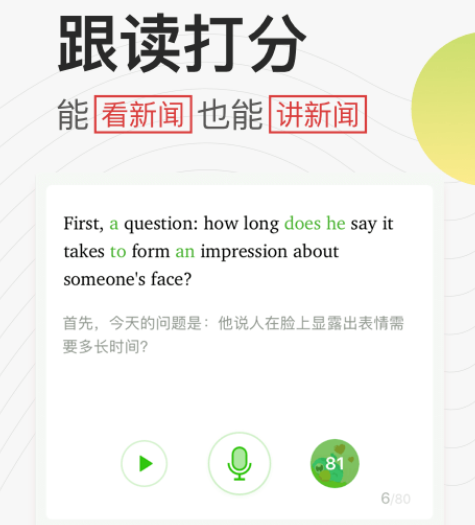 跟读英语不仅可提升口语能力,同时也能提升对英语语法的理解,每一个跟读软件当中都会涉及到众多英语语法以及句子结构,跟读句子可以帮助大家更好的理解这些知识,更好的理解语法。这是一款非常有趣的学习软件,通过听美剧的方式提升口语能力,其中有7万家热门英语节目,看完节目之后自己录一遍,仅仅几分钟就能给予专业的测评。