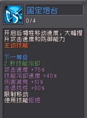 第二个角色【堡垒】,这个角色是非常适新手玩家来体验的,这个角色不管是在前期的作战能力也好,还是技能强度,都是可以排得上名号的,最主要的是这个角色的技能强度,其主动技能【固定炮台】,这个技能会牺牲移动速度,然后大幅度提升堡垒的攻击速度和防御能力,试问在有攻击速度的时候,伤害肯定也是很高的,同时角色还有防御能力,技能效果会增加80%的抗击退性,同时增加75%的攻击速度,这个设置非常的恐怖。而且技能还可以召唤出一个机关弩炮台,来进行协助作战,这就相当于多了一个上场的角色,以多打少肯定是有很大优势的,而且机关弩还会造成100%的穿刺伤害,会在场上持续30秒的时间。