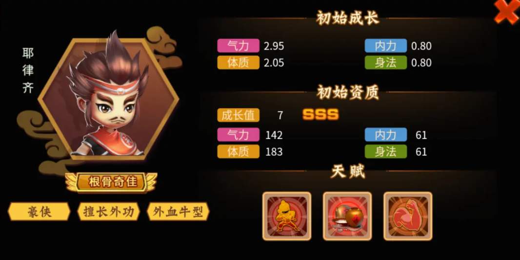 耶律齐是小编今天第1个为大家介绍的角色,该角色没有相应的职业技能。综合评价上来说算一个相当不错的输出角色。作为一个输出类的角色,天赋上带了防御。在该天赋1的加持上攻打一些高防高血的boss和怪物的时候,能发挥出相当不错的效果。角色在不断的培养之下,核心的输出力量会随着等级的提升而变高,防御力也会堆叠的很吓人。其他另外两个天赋就比较普通了,经脉技能上比断浪还要强。如果在后期策划能将职业技能加上的话说出力量应该能达到s级。