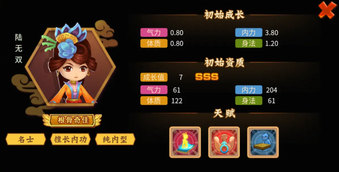 陆无双该角色的辅助能力比较出色,辅助效果比较一般,天赋2和3都能为角色提供一些输出效果,但是却又很缺乏比较优秀的输出天赋和技能,在队伍搭配上就并不适合作为主力的输出来进行使用,可以勉勉强强拉上做一个副主c。最为让玩家关注的是该角色有一个天赋一的辅助技能,辅助能力比较优秀可以在打斗的时候为群体加buffet和命中,效果都会大幅度提升。