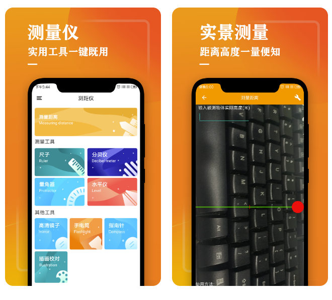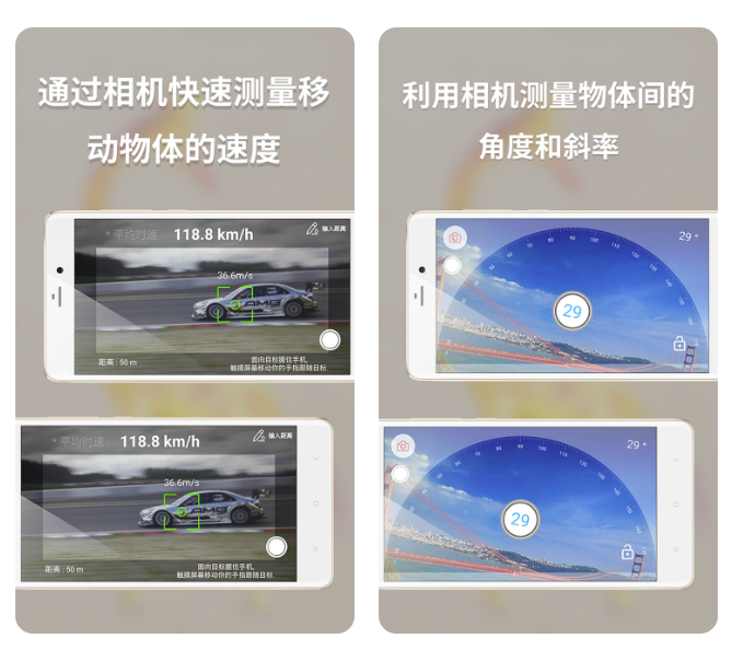 功能超级强大的测量app,运行的环境是支持安卓应用类型的各种影音图像的,该软件里边为大家准备了各种测量的工具,你都是可以反复的使用,通过摄像头的方式就可以给你提供精准的测量数据,可以说非常的方便快捷了,你可以随意对角度进行调节和设定,丰富的工具箱里边你想用什么都可以直接点击。