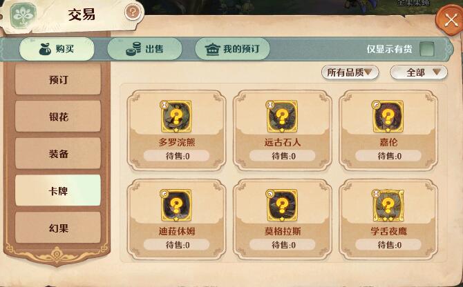 玩家能够在集市进行交易的五篇有银花、装备、卡牌、幻果、符文、表情、外观以及其他材料,能够交易的道具还是非常多的,这也就代表着玩家能够从集市玩法里找到快速提升自己的方法,能够在这里将一些当前无法获取到的资源提前购买到,极大程度上减轻了玩家爆肝的麻烦。