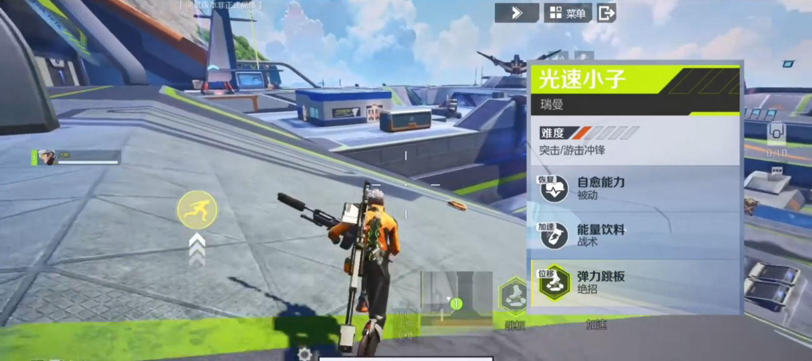光速小子被动技能为脱离战场之后,可以得到血量的持续恢复,拥有强大的续航能力,战术技能为血量升高之后,可以获得加速效果。光速小子的大招技能为打造一个弹力板,角色可以通过二段跳达到其他角色不能到达的地点,在头跑是非常有用的一个技能,关键时刻可以顺利脱战。