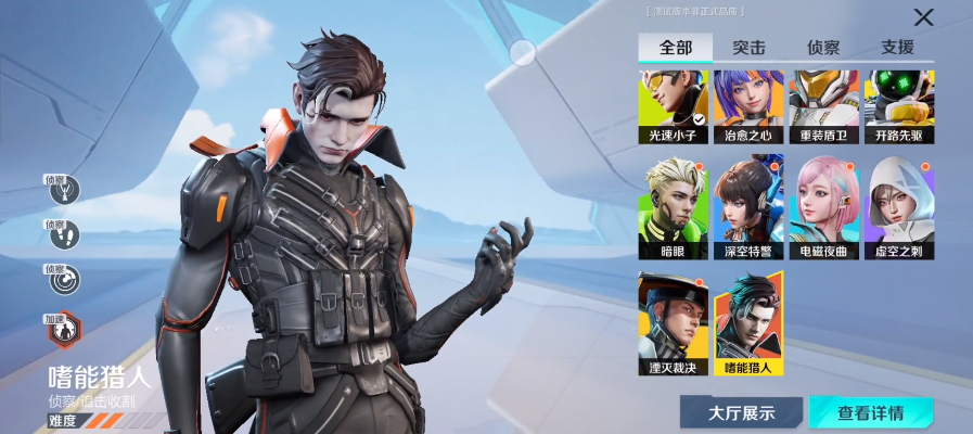 首先要知道嗜能猎人在游戏中定位是辅助类型的,而且是侦查类型的辅助角色,主要作用是给自己以及队友提供敌人的位置,来帮助自己的团队更好的获得战斗优势,因此可以明确知道的是,这个角色对于队友的配合度要求比较高。一技能使用之后能够提供短时间的敌人的位置,而大招技能使用之后会立即获得移动速度的加成,如果在这段加速的时间内成功击败敌人,还能延长加速的时间。