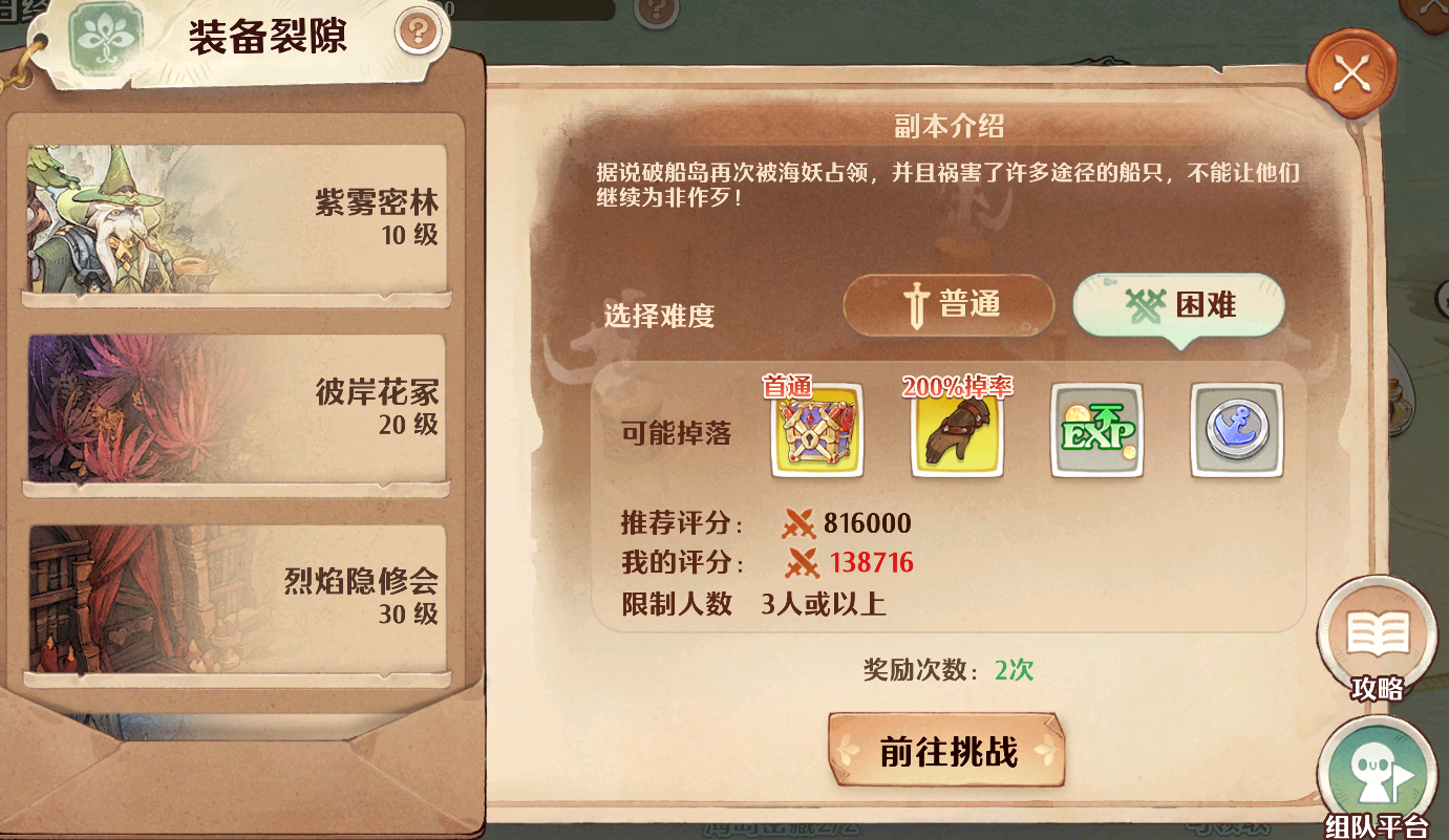 装备裂隙:这里面有10~50级的副本,首通有光珀和装备奖励,并且也可以提供绿色经验,所以建议在打完大猫货运之后就来参与,以免因为提前达到获取上限而浪费了这里的经验。