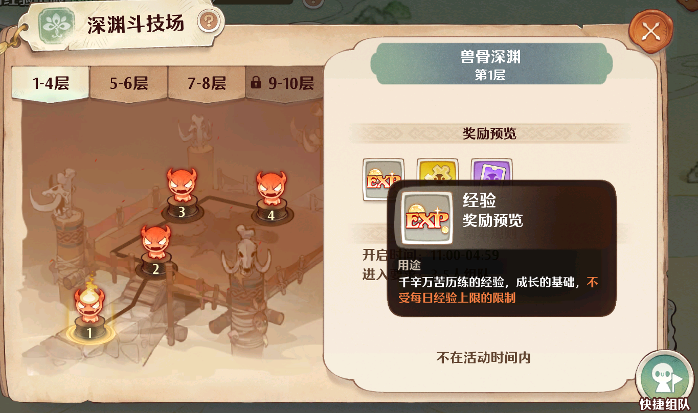 兽骨深渊:该模式需要三到五人组队来进行爬塔,每次爬塔都可获得红色经验,万灵卡牌碎片和万灵卡牌等奖励。