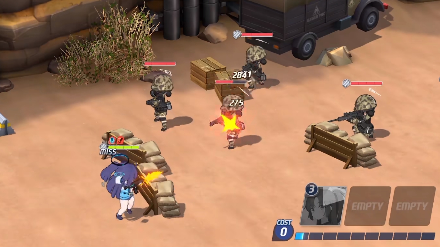 小雪能根据自身弹药打出不同的攻击效果,并且普通技能还有一定的群伤能力,只是需要目标周边的敌人与目标的距离比较近,在实战中效果较为一般。但小雪EX技在实战中的表现却很亮眼,能很好地为主C补足一定的伤害,提升队伍的过图效率。此外,小雪和泳装梓有着不错的适配性,玩家若是无法给泳装梓找到一个合适的队伍,可考虑将小雪的练度拉高。