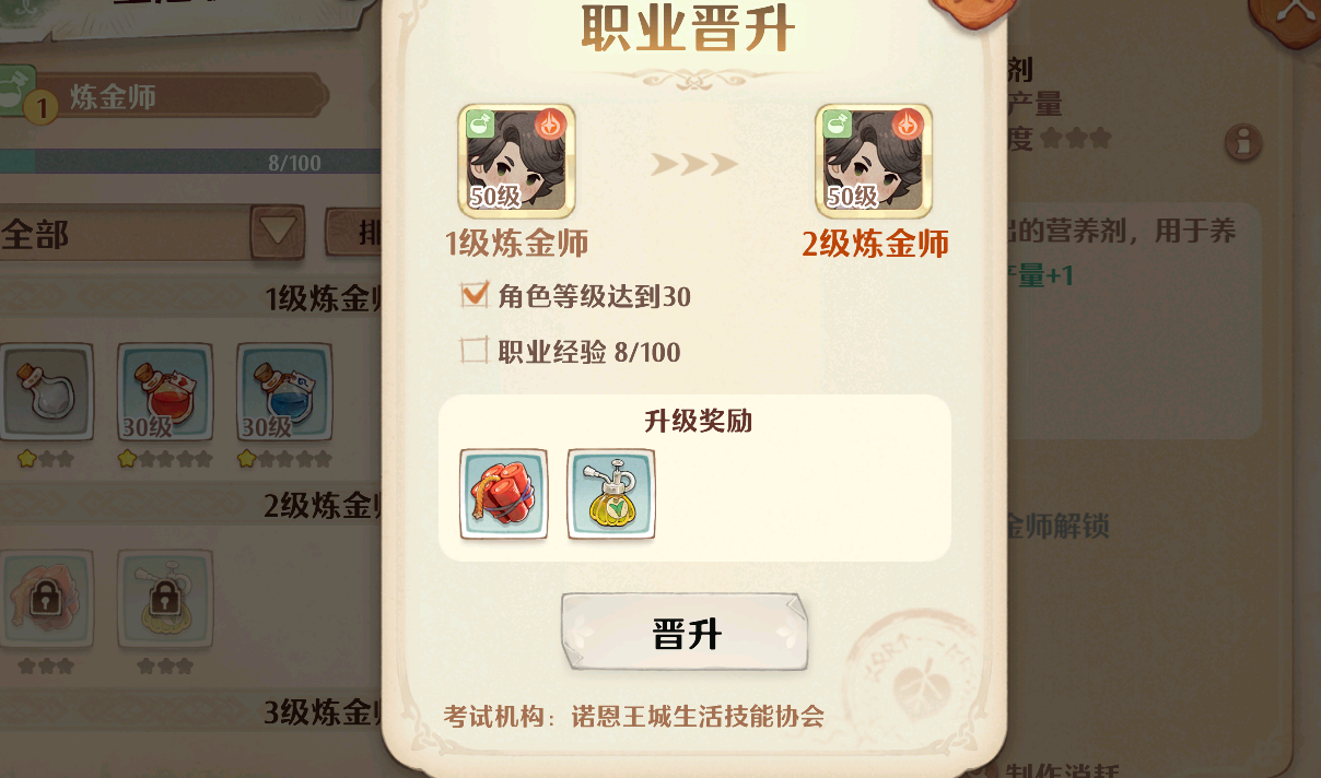 目前游戏内共有三种生活职业,分别是料理师,炼金师和工匠,这三种职业的晋级条件都是角色达到一定等级,然后职业经验条满,不过每个职业增加经验条的具体方法会有所差异。