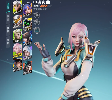 电磁夜曲的被动技能则是会慢慢修复被敌人攻击过的护盾。总的来说,电磁夜曲在游戏中的定位是辅助类型的角色,而且是功能型的辅助,在团战当中对于队友的帮助也是很大的,非常适合帮助输出类型角色去分担敌人的火力。